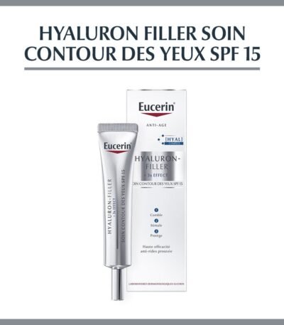 Eucerin HYALURON FILLER YEUX 15 ML, soin anti rides et anti-âge enrichi en acide hyaluronique pour lisser et raffermir le contour des yeux. Efficacité prouvée, idéal peau sensible.