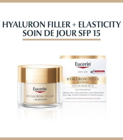 Découvrez le soin de jour EUCERIN HYALURON-FILLER peau sèche SPF 15, best seller anti rides et anti-âge, avec 50ml OFFERT. Hydratation, protection et jeunesse garanties.