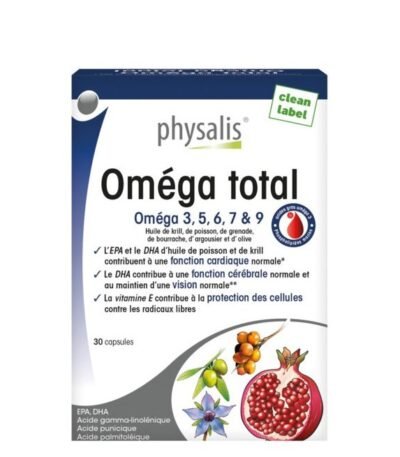 PHYSALIS Physalis Omega total 3.5.6.7 & 9 30 Capsules : compléments nutritionnels essentiels pour votre bien être, santé cardiovasculaire et protection cellulaire.