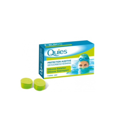 Protégez vos oreilles avec les bouchons en silicone spécial natation QUIES, pack de 6 paires pour un confort et hygiène optimale en milieu aquatique.