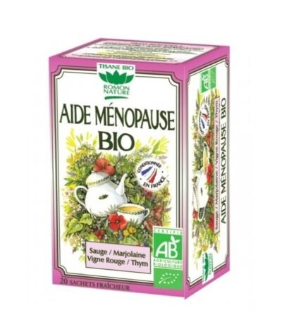 Aide ménopause bio de Romon Nature est une tisane à base de sauge qui aide à soulager naturellement les bouffées de chaleur et l’irritabilité.