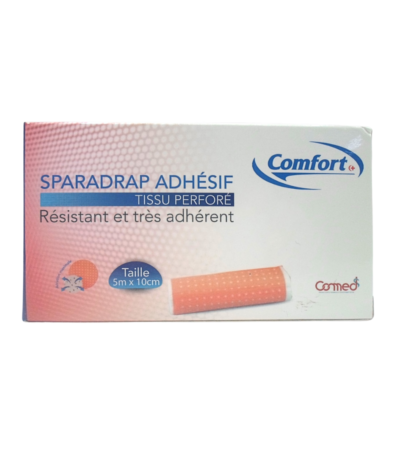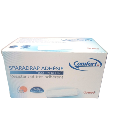 Sparadrap adhésif blanc COMFORT 5m x 10cm, hypoallergénique, résistant et confortable, idéal pour premiers soins et bien-être. Livraison rapide au Maroc.