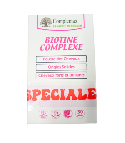 Complément alimentaire Complemax Biotine Complexe 60 Gelules + Biotine Echantillon, pour cheveux, peau et ongles, idéal Santé et Bien-être. Qualité garantie COMPLEMAX.