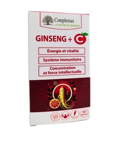 Complemax Ginseng + C 60 Gélules est un complément alimentaire combinant du ginseng, une plante aux multiples bienfaits, avec de la vitamine C.