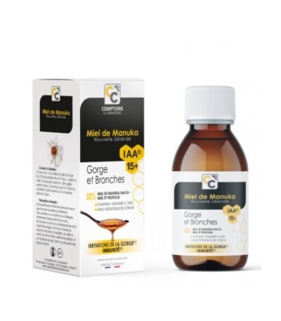 Composée à plus de 50% de produits de la ruche, cette solution buvable gorge et bronches allie les propriétés uniques du miel de Manuka IAA15+ actif de Nouvelle-Zélande aux bienfaits…