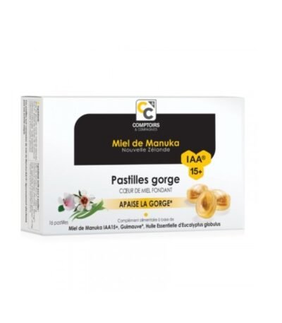 Idéales en cas de gêne dans la gorge, ces pastilles sont faites avec des actifs 100 % d’origine naturelle : miel de Manuka IAA15+ authentique de Nouvelle-Zélande, guimauve et huile essentielle d’eucalyptus globulus. Enrobées d’une délicieuse coque croquante, elles possèdent un cœur de miel fondant à l’intérieur.
