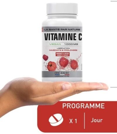 Eric Favre Vitamine C Vegan 1000mg - 100 comprimés est un complément alimentaire à haute teneur en vitamine C, formulé pour renforcer le système immunitaire, réduire la fatigue et protéger les cellules contre le stress oxydatif, adapté aux régimes végétaliens.