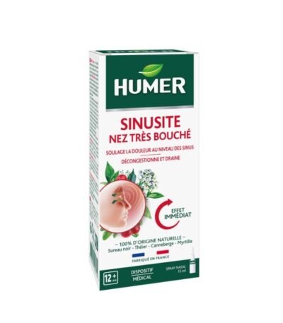 Humer Sinusite Spray Nasal 15 ml est une solution hypertonique 100% naturelle à base d’eau de mer, enrichie en huiles essentielles et en extraits de plantes, conçue pour décongestionner les sinus, réduire l’inflammation et soulager les symptômes de la sinusite.