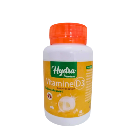 Hydra Premium Vitamine D3 60 Comprimes, un complément naturel bio pour renforcer os, muscles et immunité, livré rapidement au Maroc pour votre bien-être optimal.