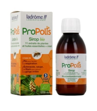 LADROME SIROP PROPOLIS 150ML, votre allié naturel bio pour soutenir vos défenses immunitaires et apaiser la gorge, dans une formule riche en propolis 100% naturelle.