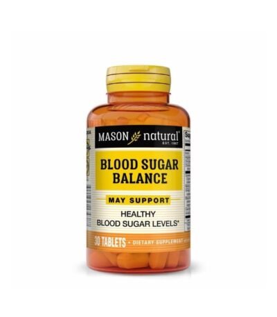 Mason Natural Blood Sugar Balance est un complément alimentaire formulé pour aider à maintenir un taux de sucre sanguin équilibré. Il contient un mélange de vitamines, minéraux et extraits de plantes qui soutiennent le métabolisme du glucose et la sensibilité à l'insuline. Boîte de 30 comprimés.
