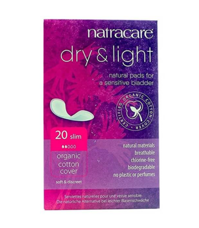 Les serviettes NATRACARE Dry & Light offrent une solution idéale pour les fuites légères, alliant protection efficace et douceur respectueuse de la peau.