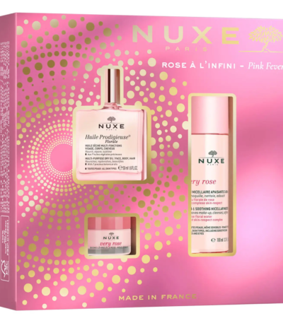 Soins formulés et fabriqués en France. Découvrez les 3 soins iconiques 100% pink au cocktail floral de NUXE pour éveiller vos sens.