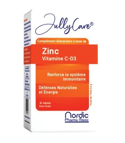 JULLYCARE Zinc Vitamine C-D3 30 Gélules renforce cheveux, ongles et vitalité grâce à un puissant combo zinc, vitamine C et D3. Forme et énergie garanties.