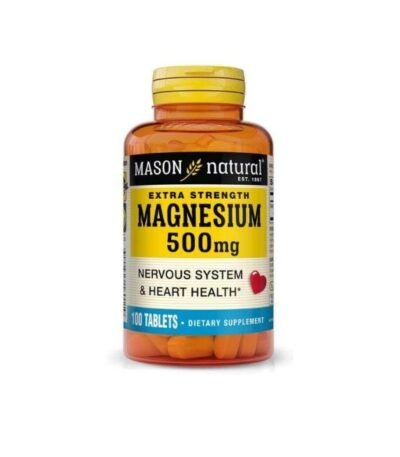 Mason Natural Magnesium 500 mg est un complément alimentaire essentiel pour le bon fonctionnement musculaire, nerveux et osseux. Il contribue à réduire la fatigue, à favoriser la relaxation et à soutenir la santé cardiovasculaire. Boîte de 100 comprimés.