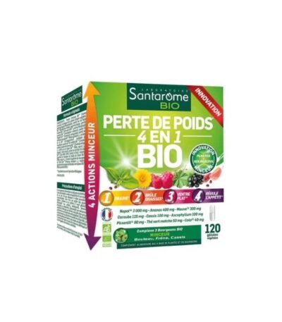 • Draine et brûle les graisses Ventre plat Régule l'appétit PERTE DE POIDS 4 EN 1 BIO Boite 120 gélules