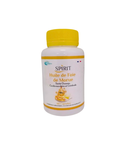 Spirit Huile de Foie de Morue 60 Capsules par SPIRIT, un complément naturel Bio pour renforcer votre santé, riche en oméga-3, vitamines A et D, idéal pour votre bien-être quotidien.