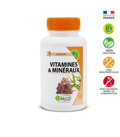 MGD Vitamines & Mineraux 120 Gelules de Mgd : votre complément idéal pour renforcer énergie, immunité et bien-être quotidien avec des vitamines et minéraux essentiels.