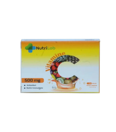 Boostez votre immunité avec NUTRILAB VITAMINE C 500 MG - 30GÉLULES. Complément idéal pour le bien-être, fatigue et protection antioxydante.