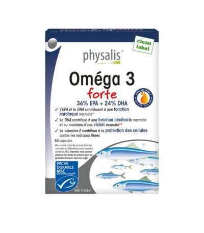 Physalis Oméga 3 forte contient des acides gras polyinsaturés oméga 3 EPA (36%) et DHA (26%) dans un rapport naturel EPA / DHA de 1,5.