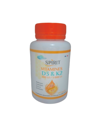 Spirit Vitamines D3 & k2 60 capsules de SPIRIT pour un Bien Etre optimal. Soutenez vos os et votre immunité avec ce complément 100% naturel, facile à consommer.