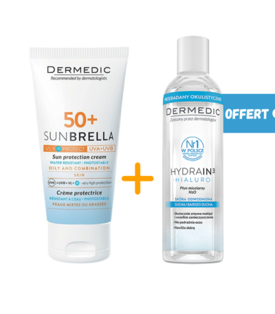Dermedic Sunbrella Creme Spf50+ Peau Mixtes ou Grasses + Eau micellaire 100ml Pack