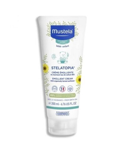 Le gel lavant anti-tiraillements Mustela Stelatopia au tournesol est spécialement formulé pour nettoyer en douceur et compenser les effets desséchants de l’eau calcaire.