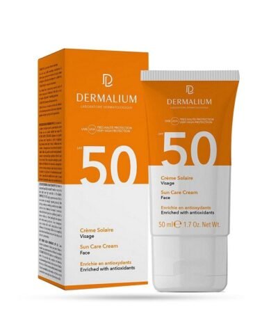 Crème solaire invisible DERMLIUM SPF50+ 50ml, protection visage efficace pour tout type de peau. Texture légère, résistante à l’eau, idéale usage quotidien.