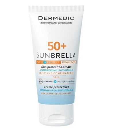 DERMEDIC Dermedic Sunbrella Creme Spf50+ offre une haute protection solaire matifiante pour peaux mixtes ou grasses sujettes à l’acné, idéale pour un soin visage quotidien.