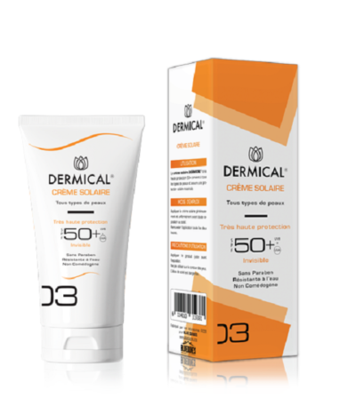 La crème solaire DERMICAL® très haute protection 50+ convient à tous les types de peaux. Elle assure une protection optimale grâce à ses filtres photoprotecteurs anti UVB/UVA.