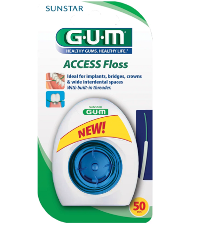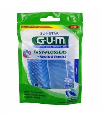 GUM Easy Flossers est un porte fil dentaire ultra-résistant. Prêt à l’emploi. Fil dentaire ciré, mentholé et ultrarésistant, serti sur le porte-fil en forme de V. Glisse facilement entre les dents,