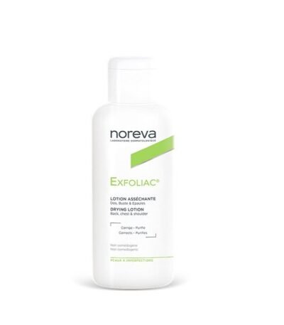 NOREVA EXFOLIAC LOTION ASSÉCHANTE 125 ml : lotion efficace pour réduire imperfections, acné, taches et marques, adaptée aux peaux grasses et mixtes, garantie originale avec livraison Maroc.