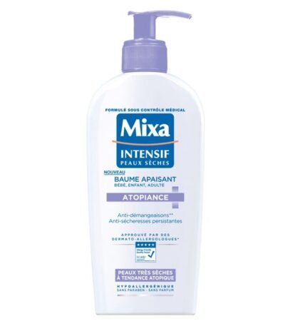 Dès le plus jeune âge, certaines peaux ont une barrière cutanée plus fragile. Très sèches et sensibles, elles sont sujettes à des sensations de démangeaisons et des inconforts qui gênent leur quotidien.Pour ces peaux dites à tendance atopique, découvrez le 1er Baume Apaisant ATOPIANCE de Mixa. Il soulage immédiatement et durablement les peaux à tendance atopique des bébés, des enfants et des adultes.Apaise intensément les peaux à tendance atopiqueSa formule au complexe nourrissant et apaisant Oméga-8, riche de 8 acides gras complémentaires, renforce la barrière cutanée pour apaiser durablement les peaux à tendance atopique.Tolérance optimaleFormulé pour les bébés, les enfants et les adultes, ce baume est hypoallergénique. Il a été certifié par la Fondation Européenne pour la Recherche sur les Allergies, l'ECARF.