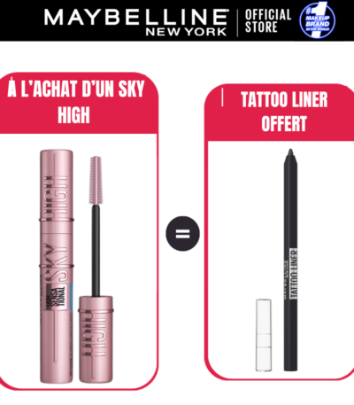 MAYBELLINE SKY HIGH Des cils d’une longueur vertigineuse avec Sky High, mascara volume et longueur illimitée. Sa brosse flexible capture tous les cils, même les plus petits, pour les allonger et les étirer de la racine jusqu’à la pointe. Tattoo Liner Smokey Découvrez notre 1er crayon gel à estomper pour un regard smokey glamour tenue 36h*.