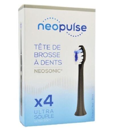 Pack 4 têtes ultra souples NEOPULSE recharge pour brosses à dents électriques, noirs, compatibles, doux sur les gencives, idéal pour une hygiène bucco-dentaire optimale.