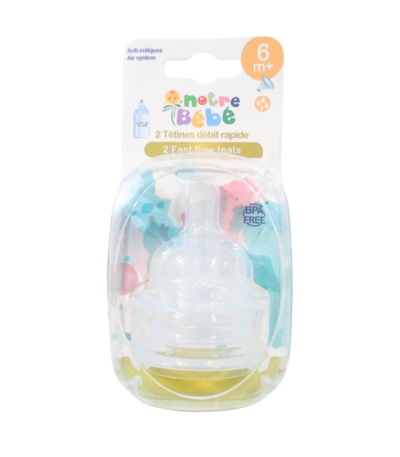 Tétines bleu +6m Notre Bebe, débit adapté, confort et sécurité garanties par NOTRE BEBE. Idéal pour bébés, conforme normes puériculture.