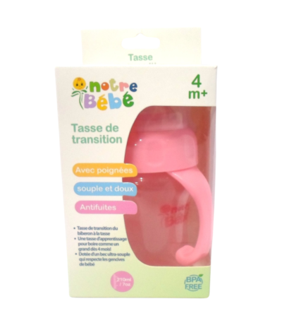 La Notre Bebe Tasse de Transition +4m 210ml facilite le passage au verre en toute sécurité dès 4 mois. Confort, anti-fuite et matériaux sans BPA garantis.