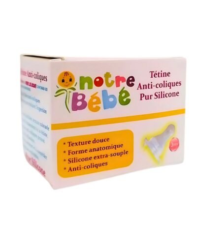 Sucette physiologique dès 6 mois par NOTRE BEBE : sécurisée, confortable, conçue pour le développement bucco-dentaire du bébé. Qualité et livraison rapide au Maroc.