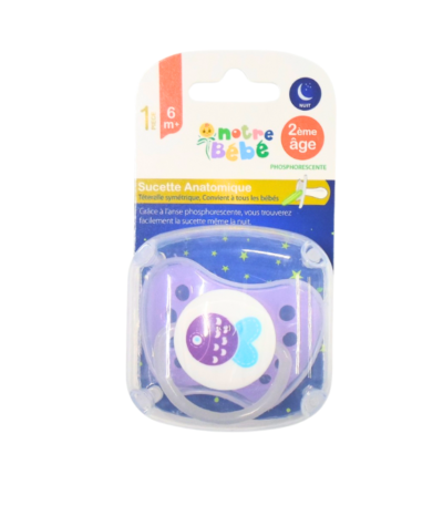 La Notre Bebe Succette Anatomique Nuit 2eme Age +6mois garantit confort et sécurité aux bébés dès 6 mois. Sucette ergonomique, sans BPA, idéale pour la nuit.