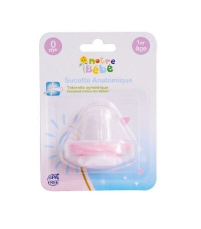 Sucette anatomique Notre Bebe 1er Age +0mois, sécurisée et douce, idéale dès la naissance. Confort et hygiène garantis pour apaiser votre bébé au quotidien.
