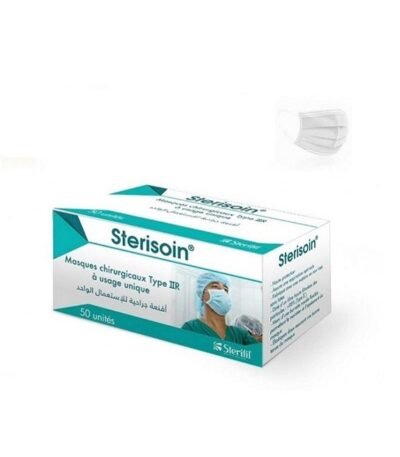 Assurez votre Bien Etre avec les masques chirurgicaux blancs STERISOIN : protection efficace contre le Covid 19, confort optimal, pack de 50 unités pour usage quotidien.