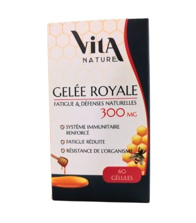 Vita Nature Gelée Royale 300mg - 60 Gélules est un complément alimentaire naturel riche en nutriments, conçu pour renforcer le système immunitaire, augmenter l'énergie et favoriser la vitalité générale.