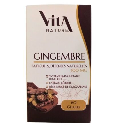 Vita Nature Gingembre 300mg - 60 Gélules est un complément alimentaire naturel conçu pour soutenir la digestion, renforcer l’immunité, et aider à soulager les nausées et les inflammations.