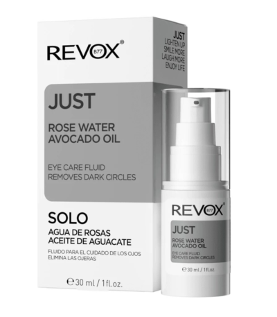 REVOX B77 JUST ROSE WATER AVOCADO OIL EYE CARE FLUID Ce fluide de soin des yeux profondément hydratant est enrichi en eau de rose, beurre de karité, huiles d’avocat et d’amande douce pour prévenir les cernes.