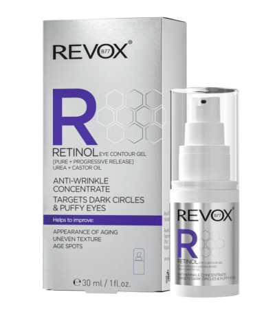 REVOX B77 RETINOL EYE GEL ANTI-WRINKLE CONCENTRATE Ce gel contour des yeux, enrichi en rétinol et en urée, est spécialement conçu pour aider à réduire l’apparence des signes de vieillissement dans la zone délicate des yeux, tels que la texture inégale et les taches.