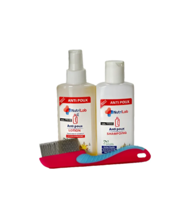 Nutrilab Pack Anti Poux Avec Brosse : traitement complet pour éliminer poux et lentes, soin cheveux doux et efficace. Idéal famille, livraison rapide Maroc.
