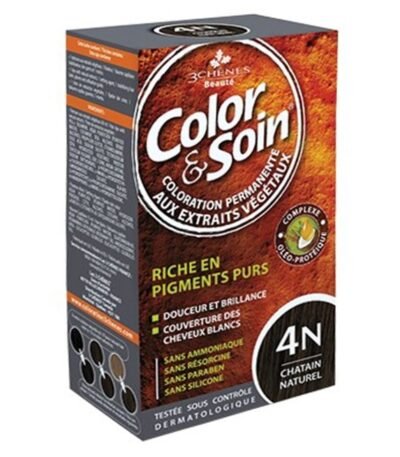 Color Et Soin Chatin Naturel 4N LES 3 CHÊNES : couleur chatin naturelle intense et soin complet pour cheveux colorés, brillant et protection longue durée.