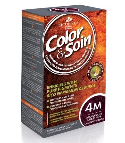 Color Et Soin Chatain Acajou 4M LES 3 CHÊNES offre une coloration intense et un soin nourrissant pour des cheveux colorés éclatants et protégés.