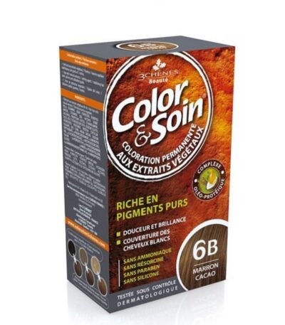 Color Et Soin Marron Cacao 6B de COLOR ET SOIN, une coloration marron intense et soin nourrissant pour cheveux colorés, durable et respectueuse du cuir chevelu.