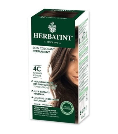 Gel colorant permanent aux extraits végétaux. Couleur 4C châtain cendré.